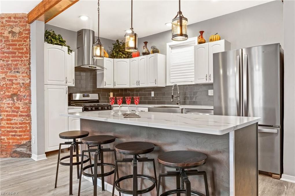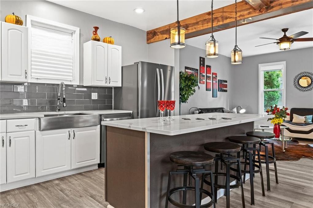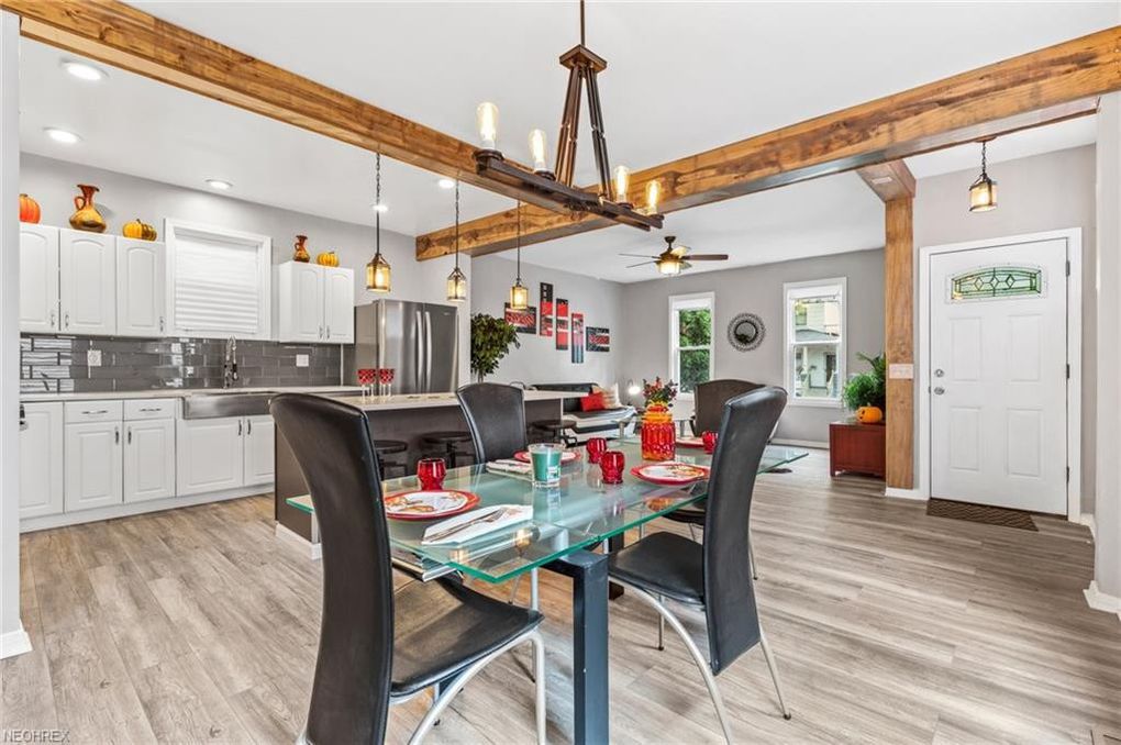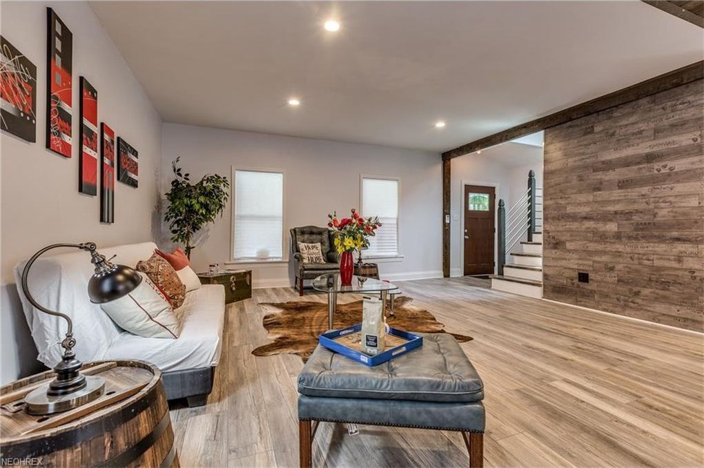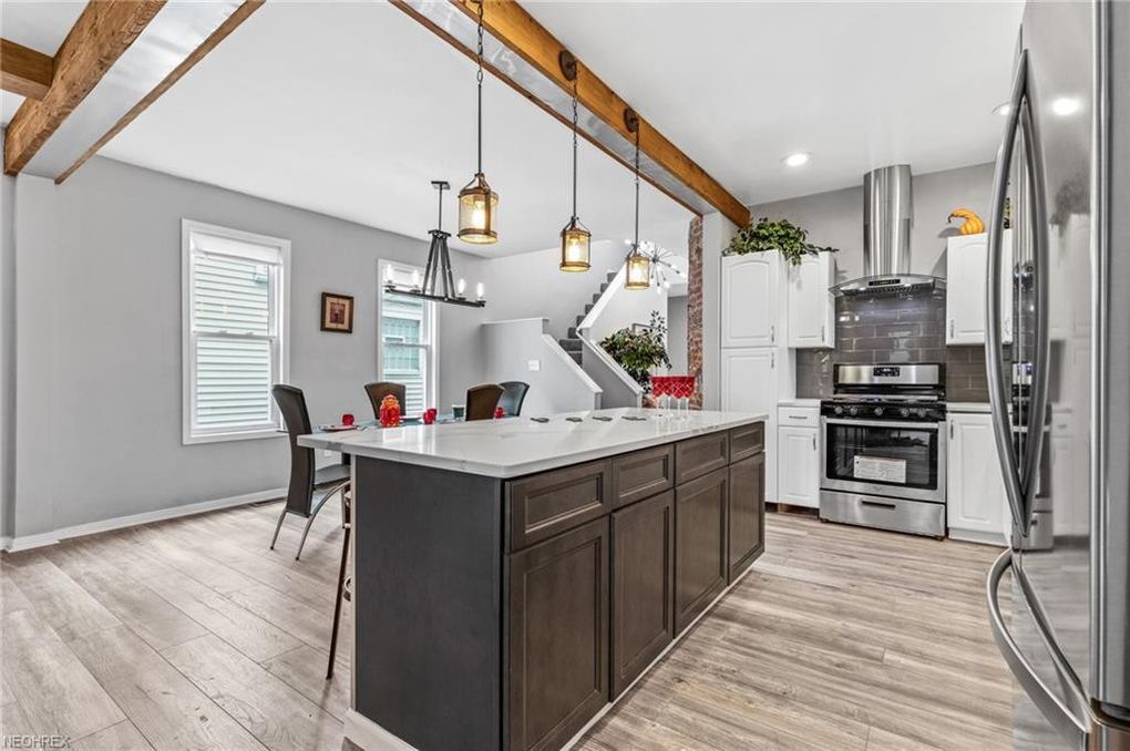 Located in the desirable Ohio City historical district, and boasting a first-floor owners suite, this 4 bedroom, 2 full and one-half bath colonial styled home has been completely renovated and brings you top of the line features and aesthetics! Gorgeous covered front porch greets you as you enter this spacious home with open floor plan and steps into the charming living room with wood wall accent.
