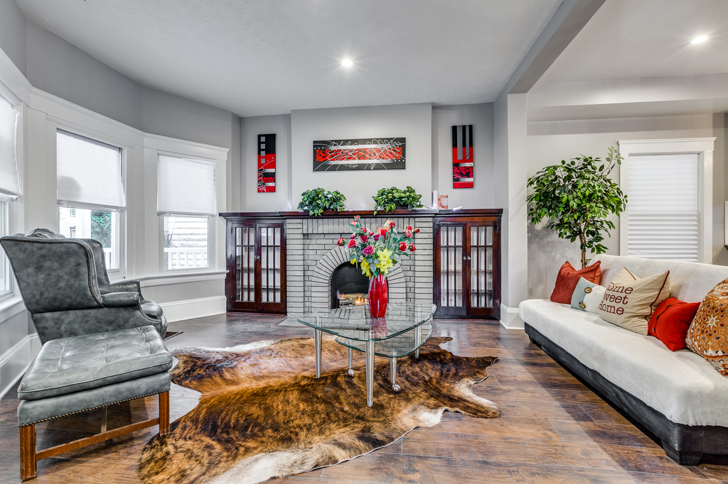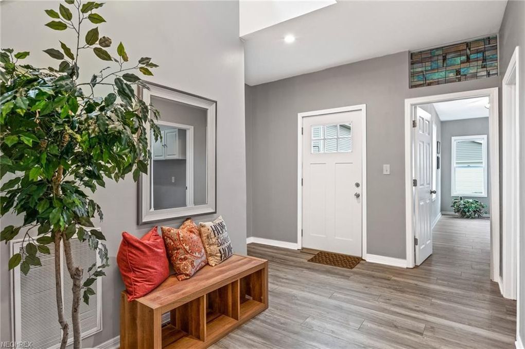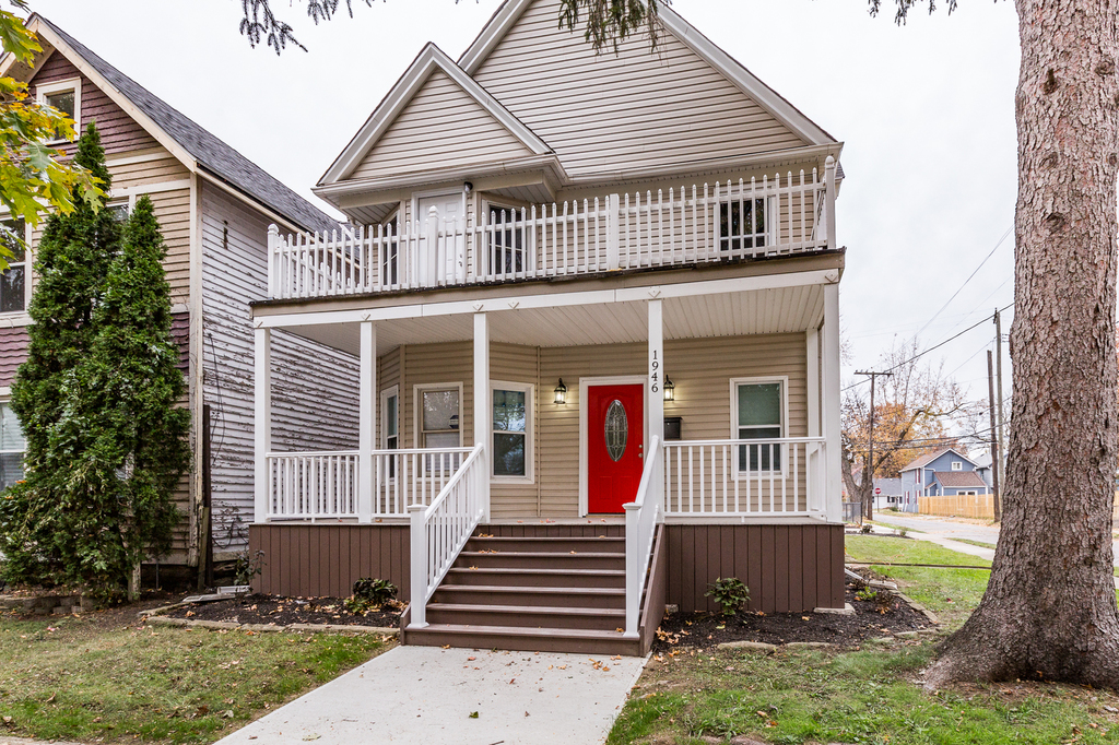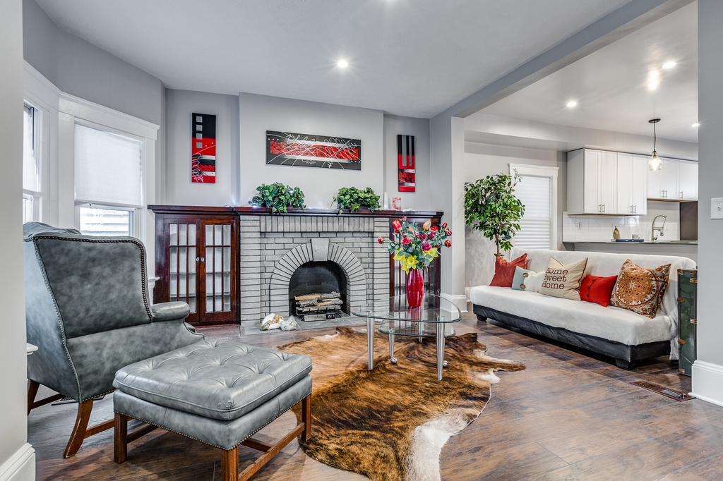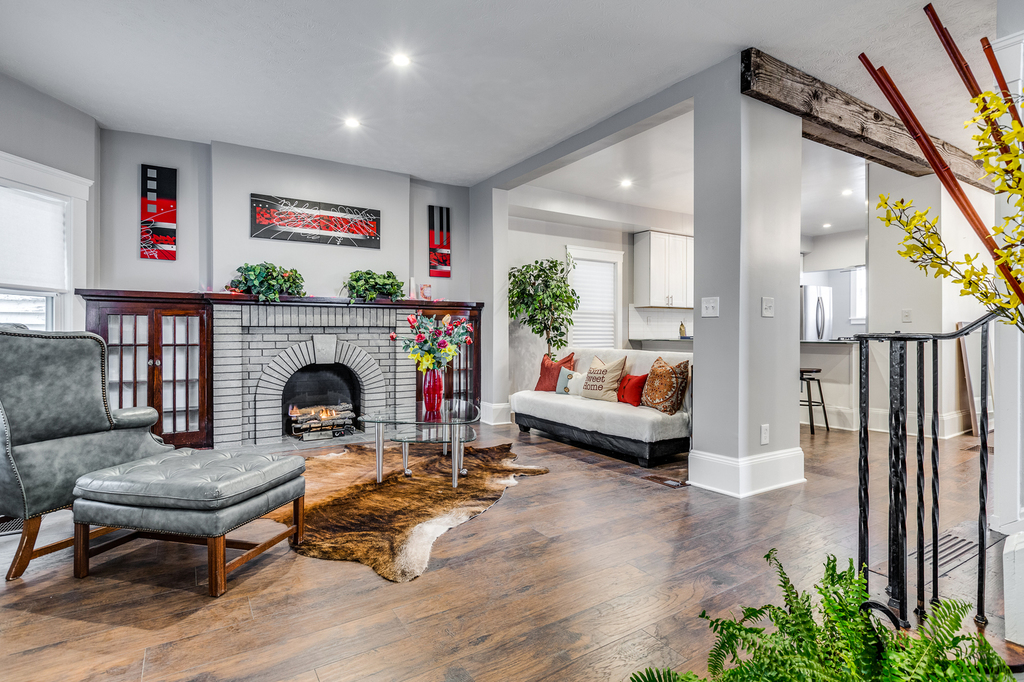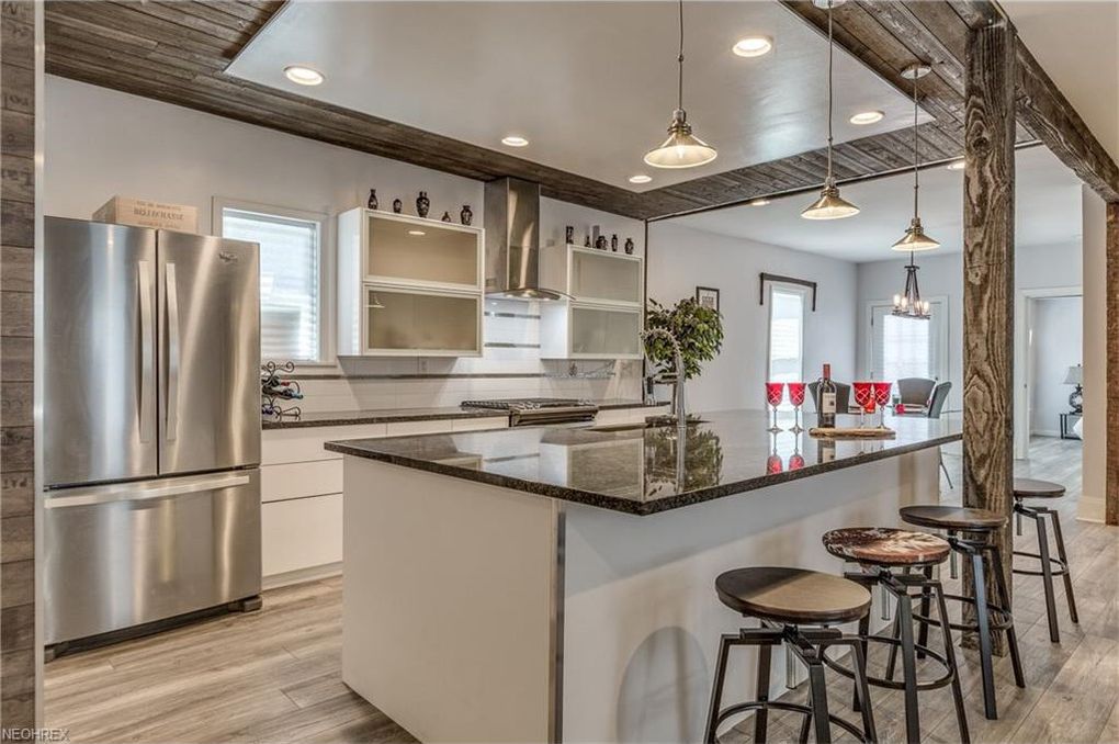 Located in the desirable Ohio City historical district, and boasting a first-floor owners suite, this 4 bedroom, 2 full and one-half bath colonial styled home has been completely renovated and brings you top of the line features and aesthetics! Gorgeous covered front porch greets you as you enter this spacious home with open floor plan and steps into the charming living room with wood wall accent.