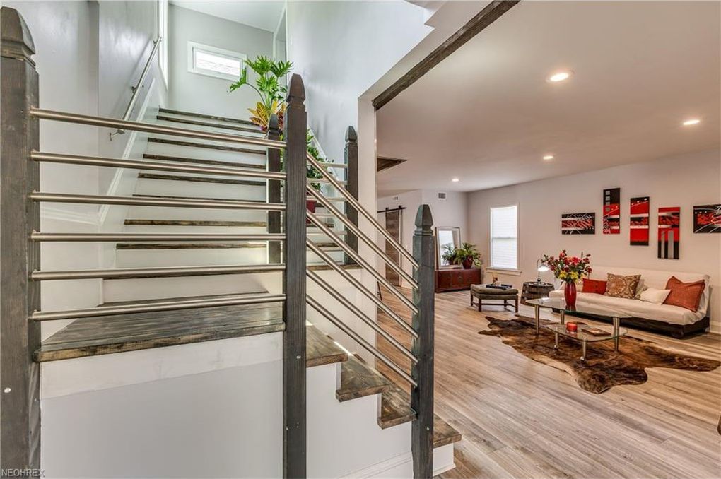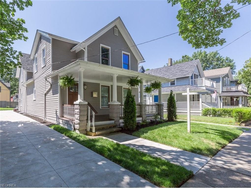 Stunning, completely rehabbed, three bedroom, three bath colonial home located in desirable Ohio City. This prime location allows you to visit many of Ohio City's great spots and destinations within minutes; from coffee and tea shops, art galleries, World famous Westside Market, restaurants plus also borders the exciting Gordon Square for extra fun! Enjoy your morning coffee on the gorgeous, open, covered front porch which leads you to the grand living room with gas fireplace offering beautifully built in cabinets on either side and ample windows allowing warming, natural ambiance. Formal dining room boasts gorgeous built in window bench with cabinets. Open floor plan with wood beam in dining room. Grand kitchen with breakfast bar, subway tile, drop down lighting, new stainless steel appliances and desired farm sink with drop down prep faucet. Unique first floor powder room highlighted by rolling wood barn door. Second floor offers owners suite with full bath and access to the second floor porch, two bedrooms, full bath and sun-room off bedroom 2. New flooring throughout! Brand new 2 car garage with opener! New central air, vinyl windows, hot water tank, all in 2017. Roof updated in 2012 with new furnace added in 2006. Plumbing and electrical all updated! Security system. Just minutes to Downtown Cleveland, Edgewater Park, Tremont and Lakewood. You don't want to miss this absolutely Gorgeous Ohio City Renovation!