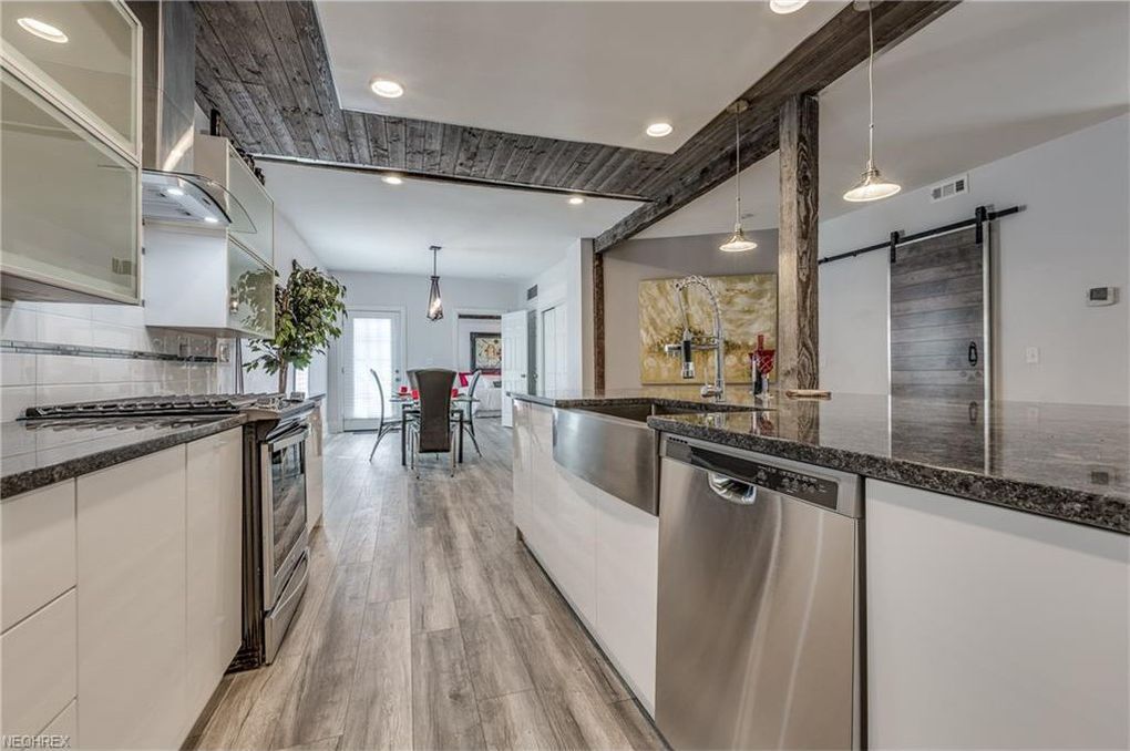 This stunning, completely rehabbed, open concept 3 bedroom, 3 bath colonial home with new 2 car garage, is located in desirable Ohio City and allows easy access to many Ohio City's great spots and destinations; all located within minutes! Coffee and tea shops, art galleries, world famous Westside Market, and restaurants. plus this location also borders exciting Gordon Square! Beautiful and ornate front covered entry greets you as you enter into the absolutely gorgeous first floor. Living and dining rooms overlook the breathtaking kitchen with over sized island, stainless steel appliances including farm sink, and range highlighted by wall mount chimney exhaust and subway tile back splash; this area is perfect size for all your entertaining needs! Spacious rear entry, half bath and office highlighted by transom window complete your 1st floor living space. Partially opened stairway guides you to the 2nd floor. Owners bedroom offers vaulted, beamed ceiling and sliding doors to glamour bath with soaking tub, glass shower with rain head and double vanity sink. 2nd floor is complete with bedroom 2 and additional full bath with tiled floor, tub surround, and wall accents. This home is warmed by natural lighting throughout and offers desired exposed beams and brick! Other updates include new floors, light fixtures, interior paint, and more. Quick commute to Downtown Cleveland, Edgewater Park, Tremont and Lakewood. Fantastic Ohio City Renovation!