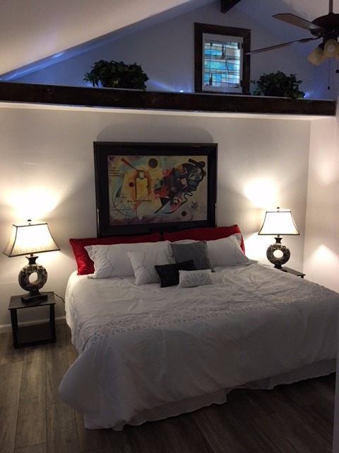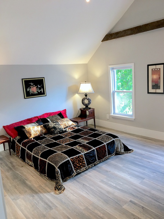 Easily entertain guests with ample kitchen counter space, soft trendy lighting, and super chic ambience. New upstairs bedroom windows are perfect for sleeping amid summer evening cross-breezes. All new appliances!
